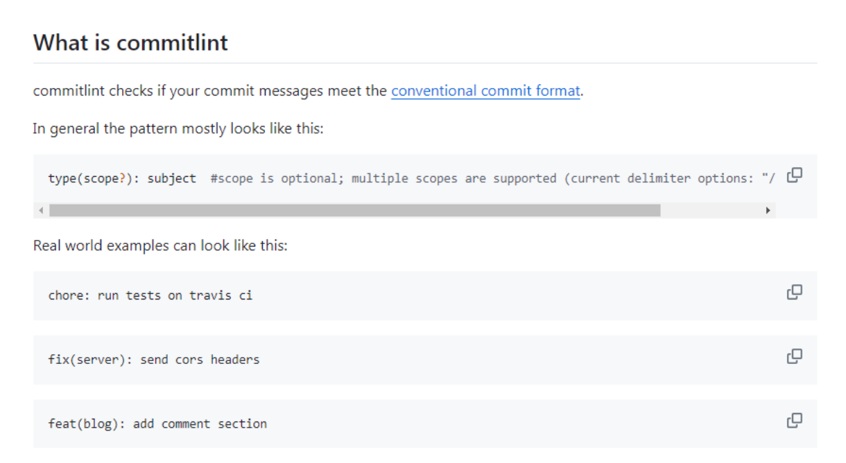 npm install --save-dev @commitlint/{cli,config-conventional}1