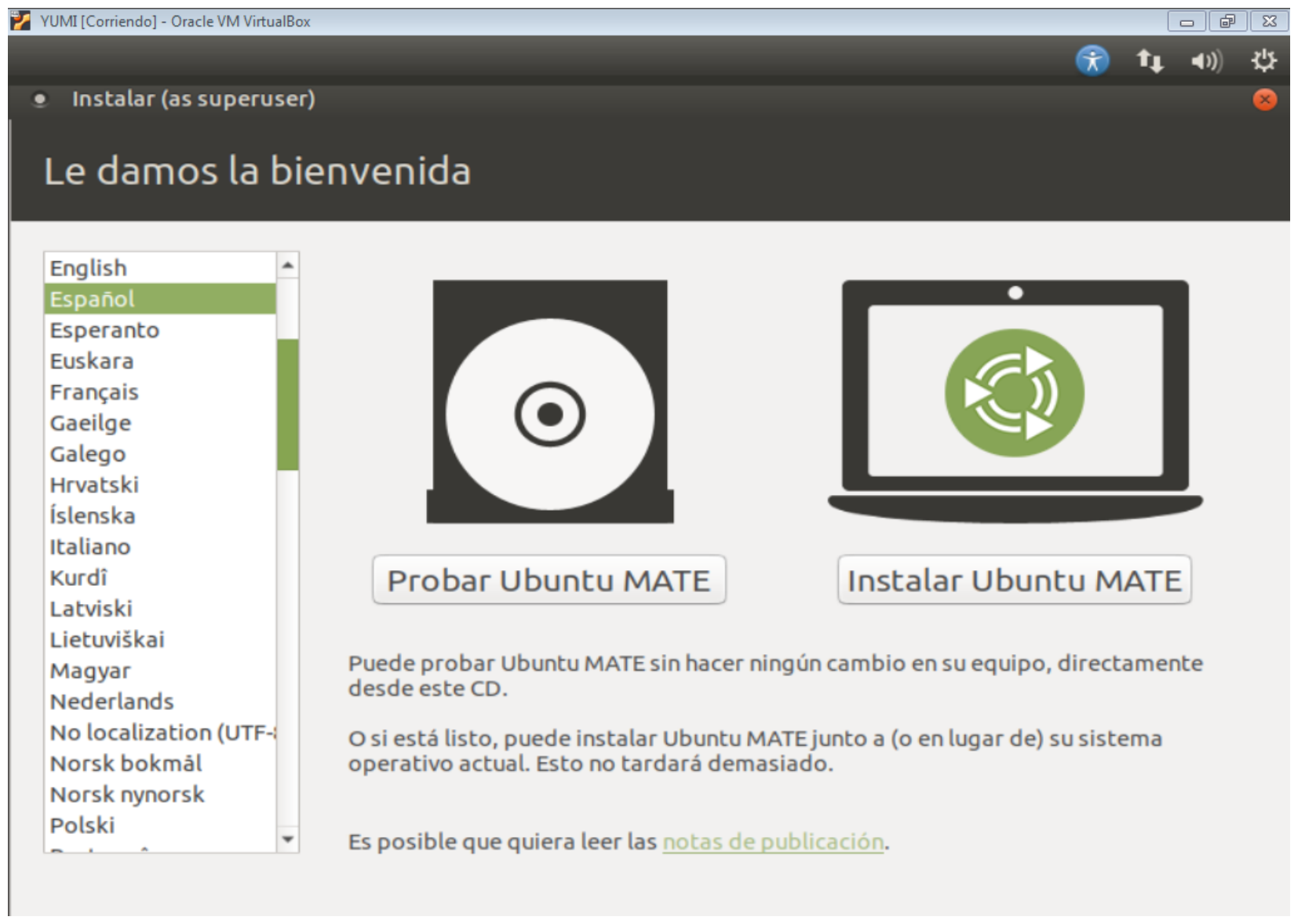 Para ver YUMI en acción, voy a configurar una máquina virtual en VirtualBox.