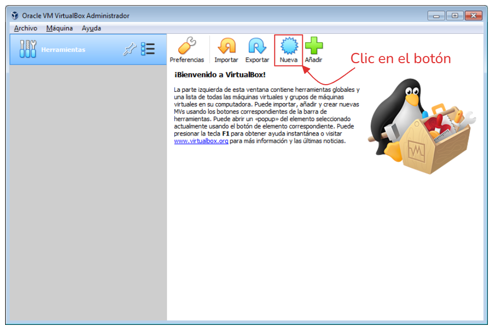 Ahora podemos abrir el programa VirtualBox y crear una nueva máquina: