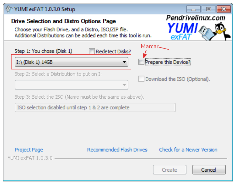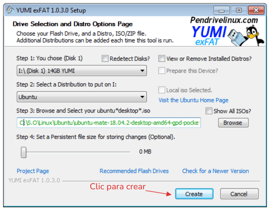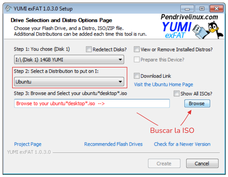 Ahora al ejecutar YUMI, selecciona tu USB preparada:
