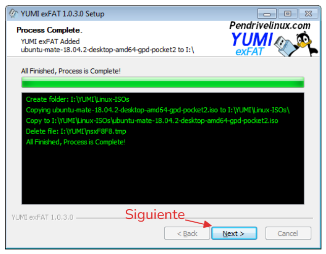 Esperamos a que termine el proceso y luego clic en siguiente: