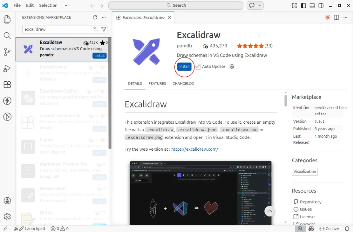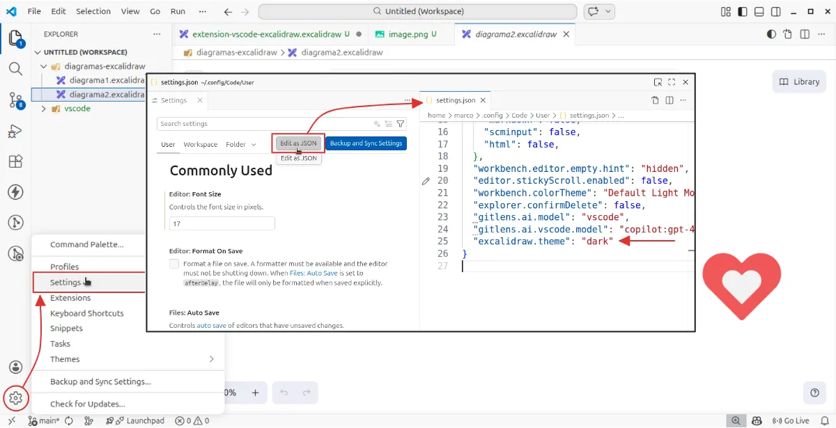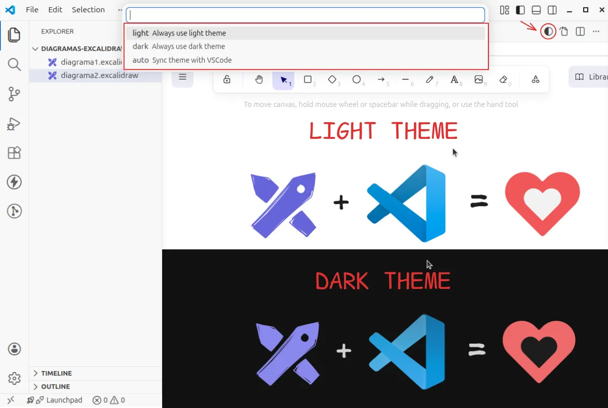 Esta extensión es una integración no oficial para usar la herramienta de diagramación Excalidraw en VS Code y dibujar directamente dentro del editor.