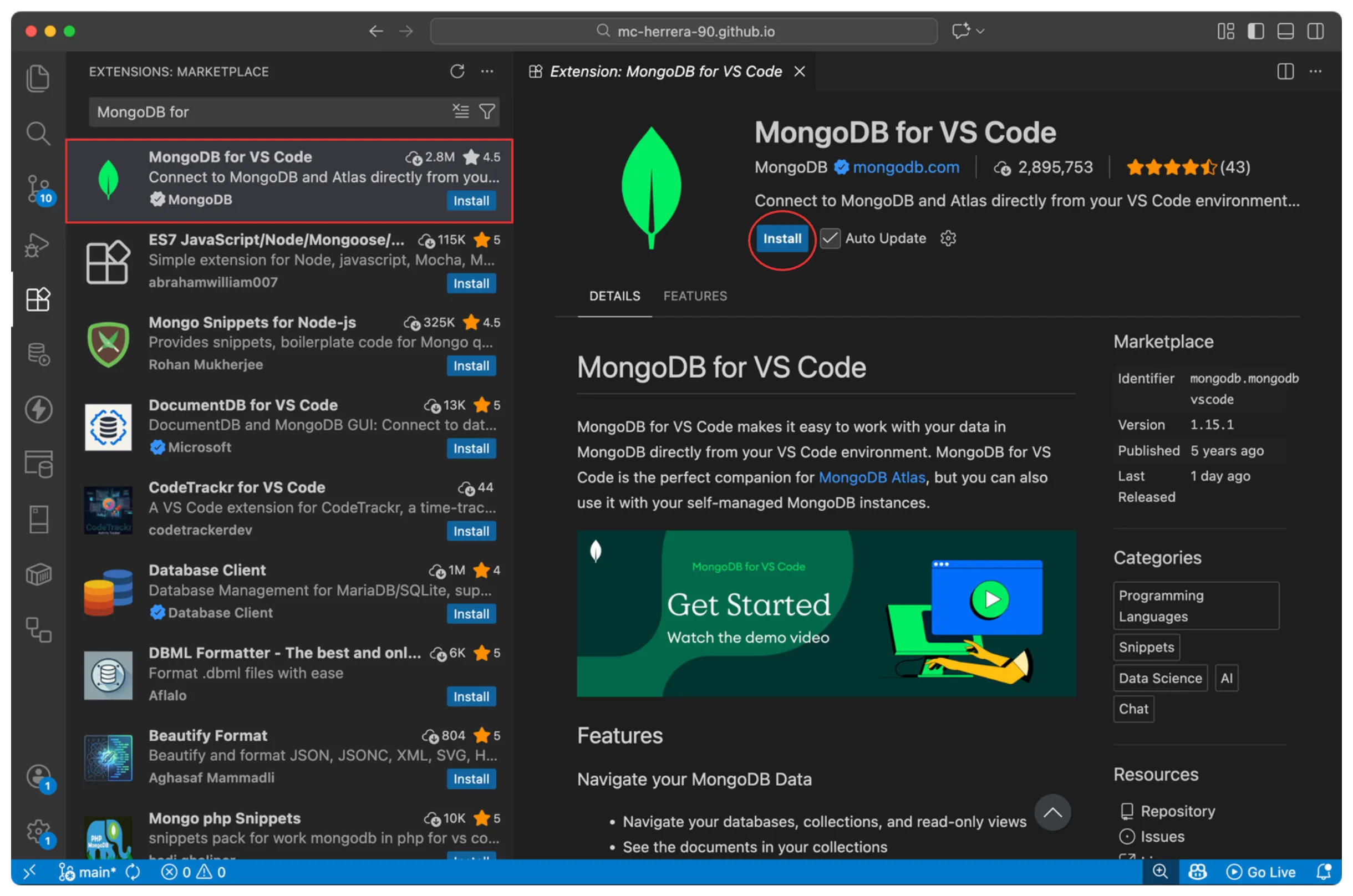 MongoDB for VS Code(autor: MongoDB mongodb.com)