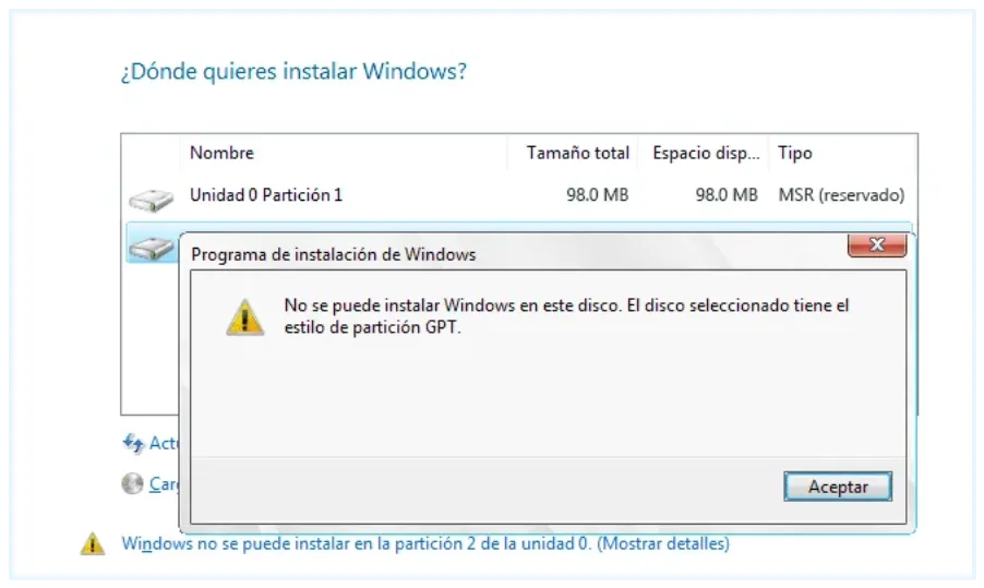 ¿Alguna vez te ha pasado que intentas instalar Windows y el instalador simplemente no deja avanzar? A veces aparece un mensaje de error del tipo “No se puede instalar Windows en este disco”, o directamente no muestra ningún disco disponible. En la mayoría de los casos, el problema no es el instalador, sino el estado del disco, las _particiones dañadas o un formato incorrecto (GPT/MBR).