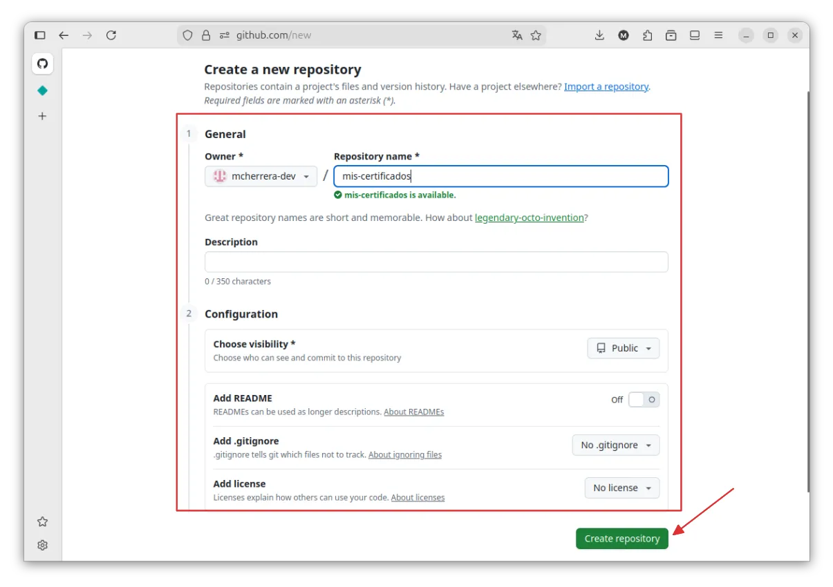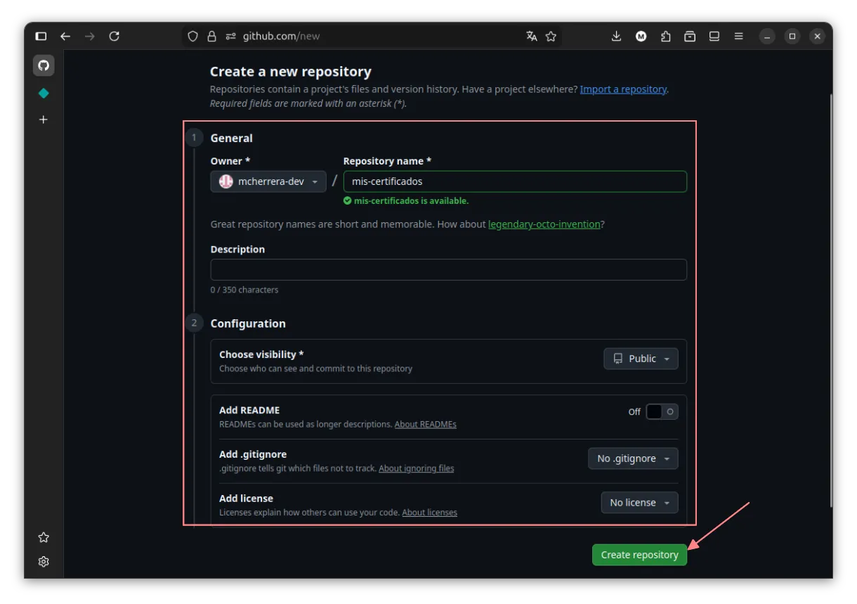 - Ingresa a https://github.com/new