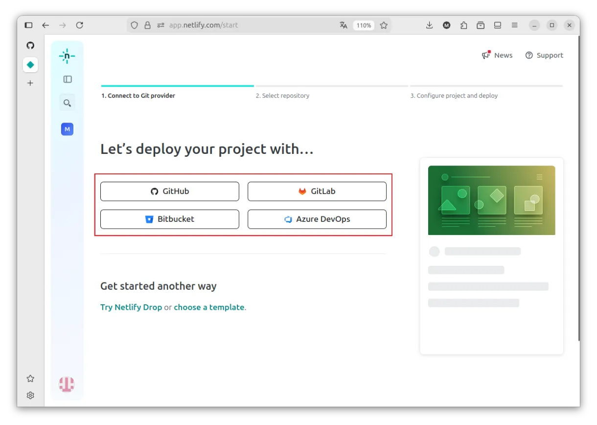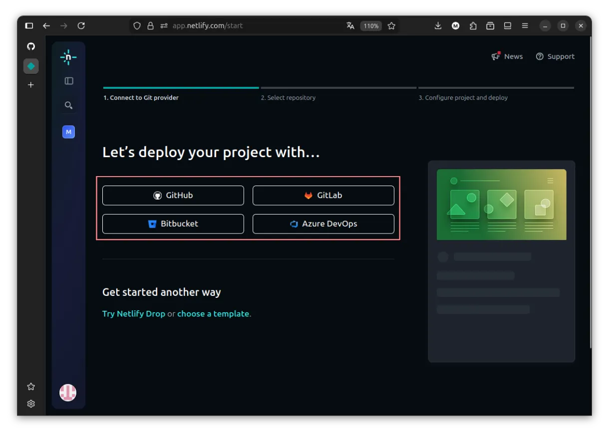 Netlify pedirá acceso al proveedor Git.