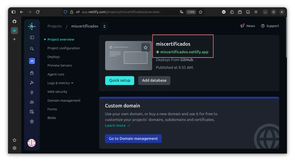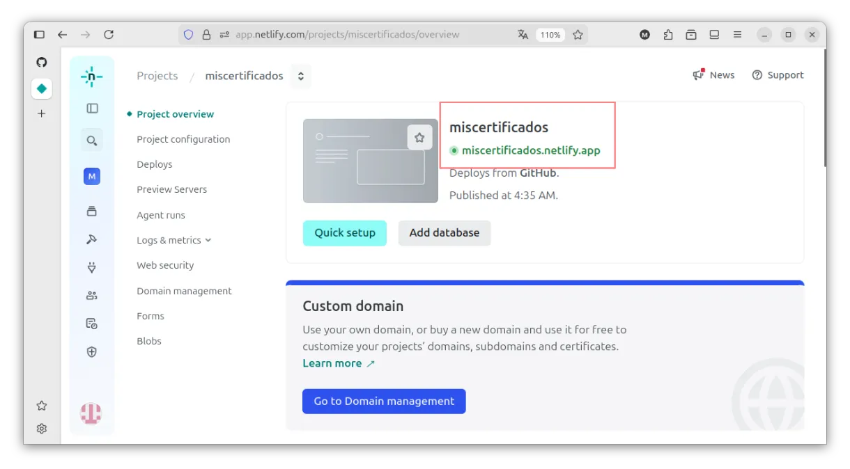 Y en cosa de segundos, el sitio ya estará desplegado.