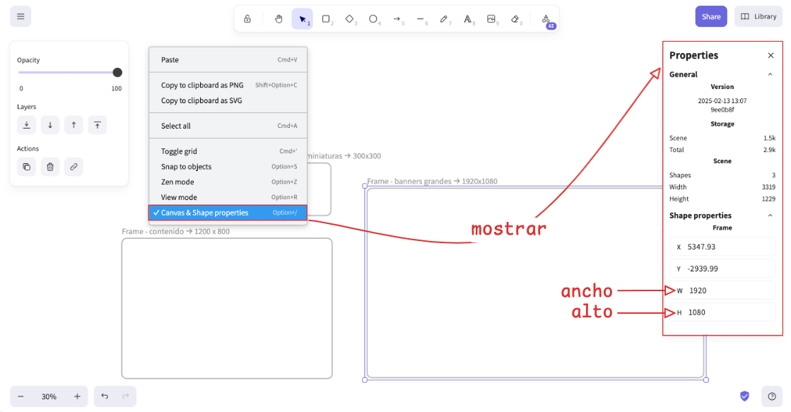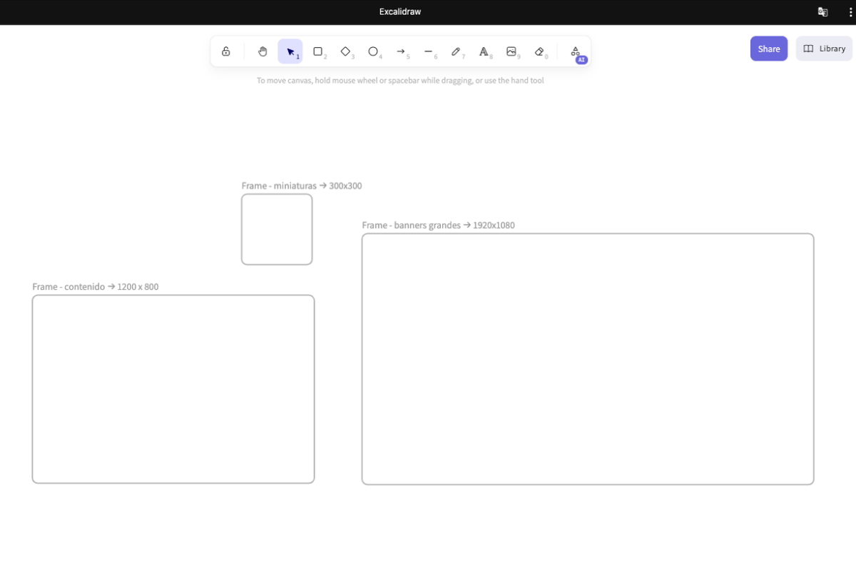 Existen diversas herramientas para crear imágenes con resoluciones específicas, y en mi caso, una de las que más me resulta útil es el uso de los marcos (frames) de Excalidraw.