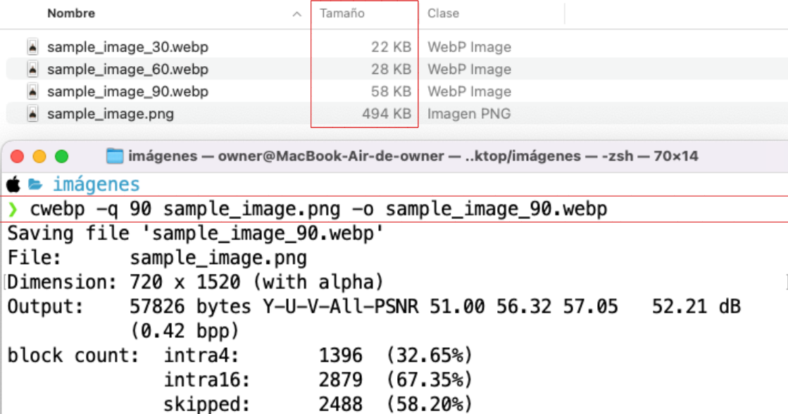 -q 80: Establece la calidad de la imagen convertida a 80 (de 0 a 100, donde 100 es la calidad más alta y el tamaño más grande).-o output-image.webp: Especifica el archivo de salida en formato WebP.