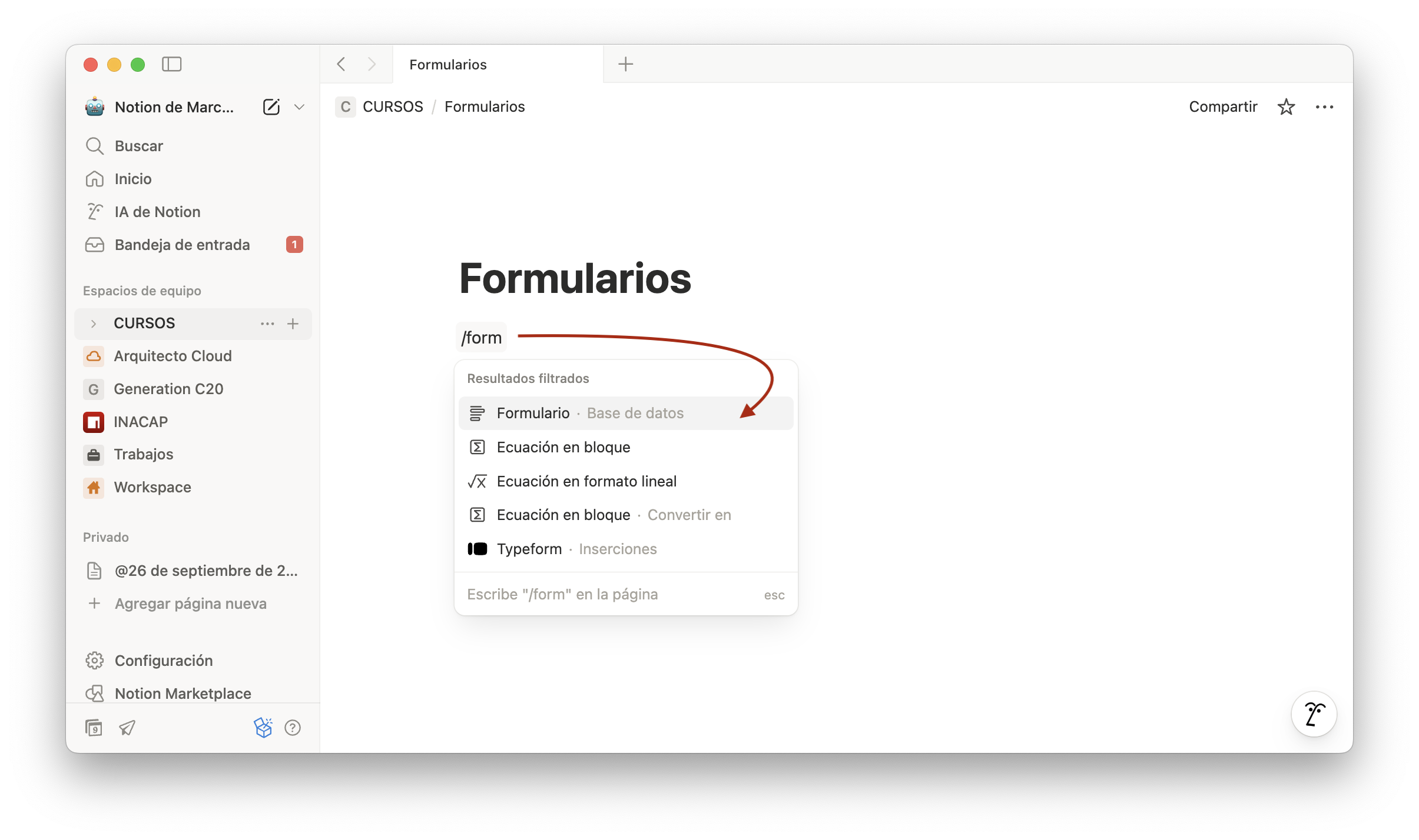 La mejor manera de familiarizarse con Notion es probar algunos bloques, simplemente escriba /
