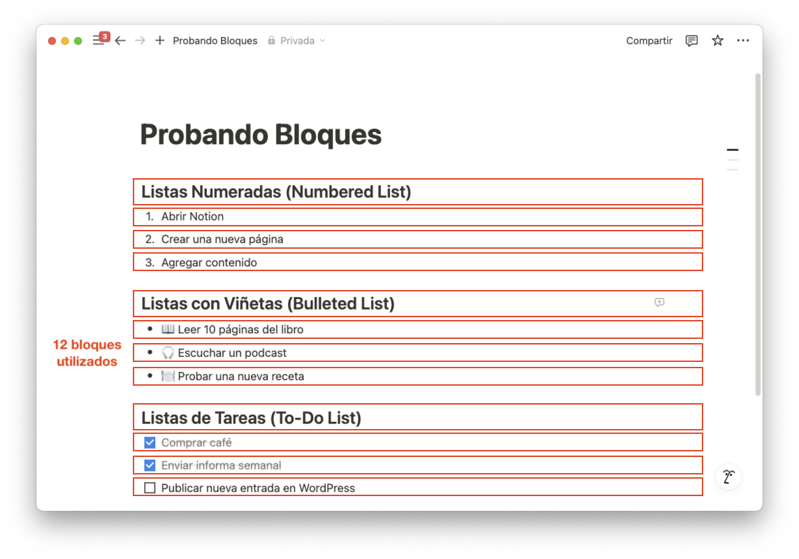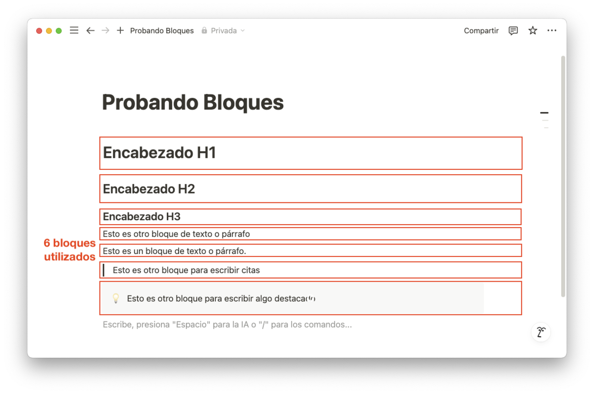 Como sabemos, todo en Notion funciona con “bloques”, un bloque puede ser texto, imágenes, listas, bases de datos y más.
