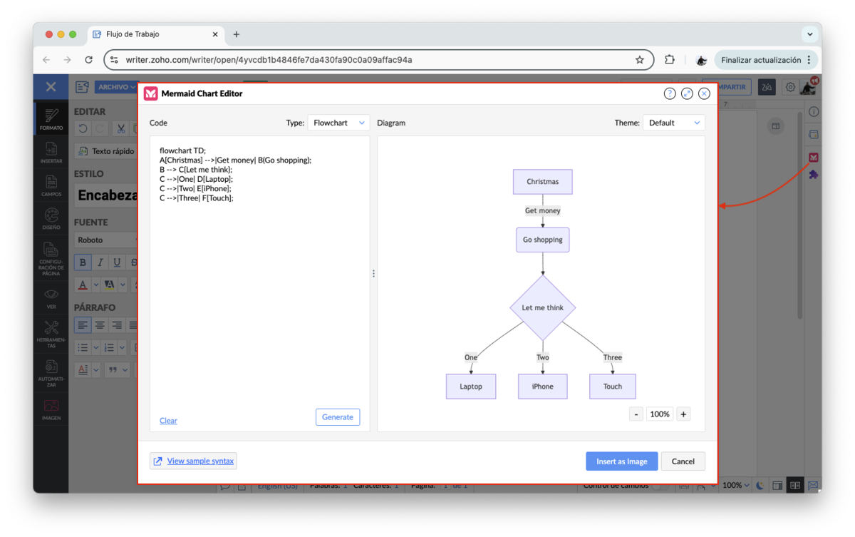 Zoho Writer facilita la elaboración de documentos técnicos al permitirle insertar bloques de código de manera rápida y eficiente. Esta función es ideal para mostrar ejemplos de código de manera clara, manteniendo el formato y la legibilidad, lo que es esencial cuando compartes manuales.
