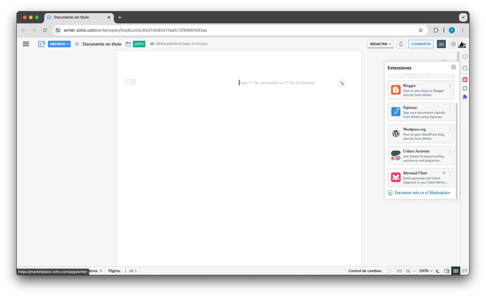 - Puedes usar Zoho Writer de manera online a través de su aplicación web, y te da la posibilidad de administrar extensiones para mejorar la experiencia, como integraciones con otras herramientas de Zoho o funciones adicionales de productividad.