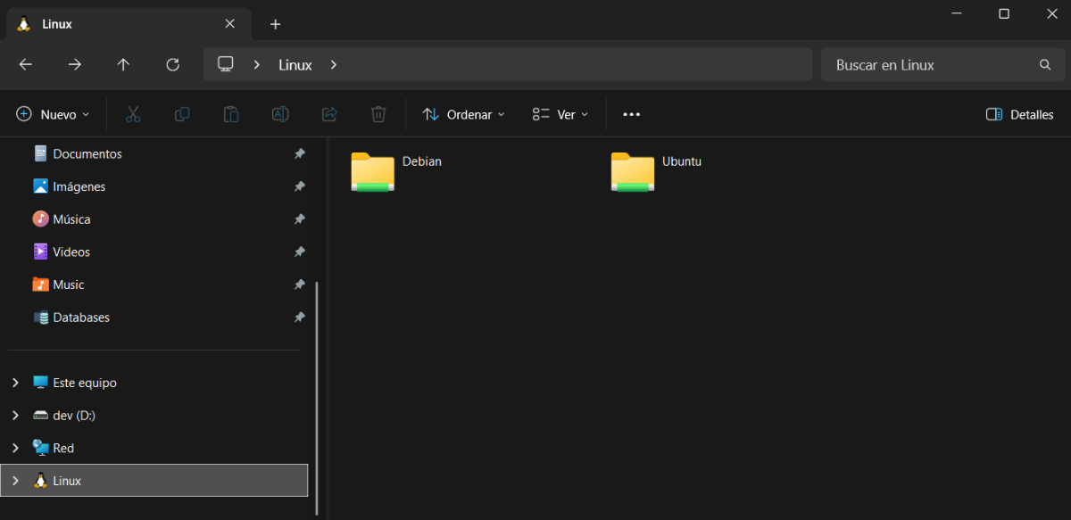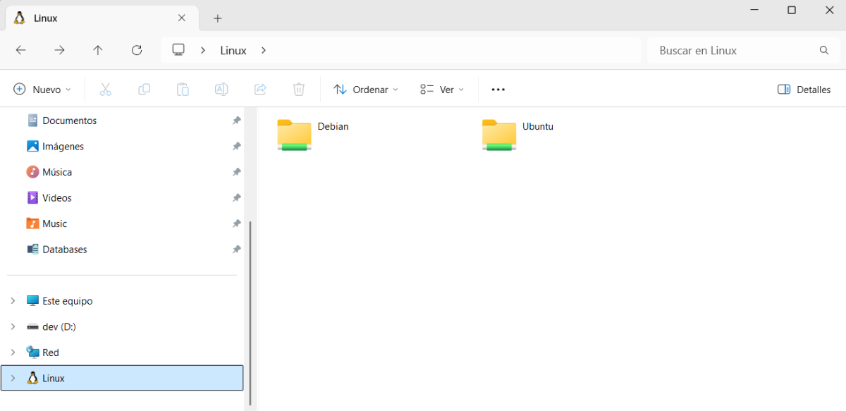 La primera ventaja de WSL es que no tienes que renunciar a la forma actual de gestionar archivos mediante el Explorador de Windows. En la barra lateral del Explorador, ahora puedes encontrar la opción Linux: