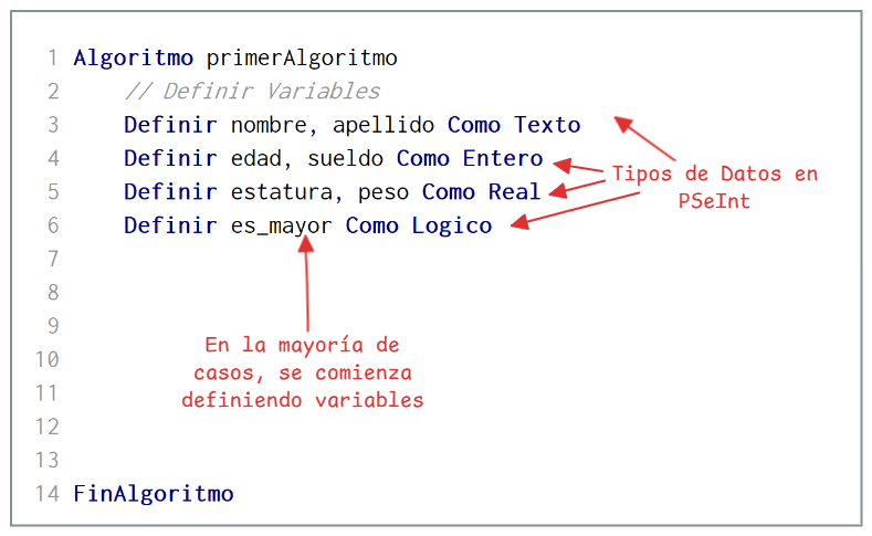 Aunque PSeInt infiere el tipo de dato ingresado por el usuario automáticamente, es una buena práctica definirlo explícitamente con anterioridad utilizando
